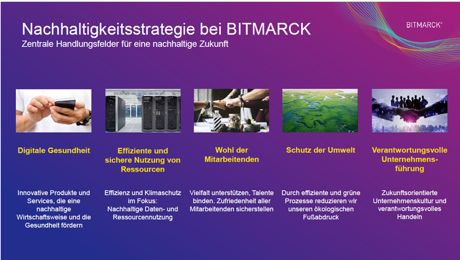 "Als zukunftsorientierter IT-Dienstleister im GKV-System tragen wir Verantwortung – für die Umwelt, für unsere Mitarbeitenden und für die Menschen, die unsere Lösungen nutzen. Deshalb setzen wir konsequent auf ressourcenschonende Prozesse, energieeffiziente Technologien und faire Arbeitsbedingungen. Nachhaltigkeit bedeutet für uns auch, innovative und digitale Lösungen zu schaffen, die unseren Kunden helfen, ihre eigenen Ziele verantwortungsvoll zu erreichen. Mit diesem umfassenden Ansatz leisten wir gemeinsam bei BITMARCK einen Beitrag für eine zukunftsfähige Gesellschaft." - Andreas Strausfeld, Vorsitzender der Geschäftsführung